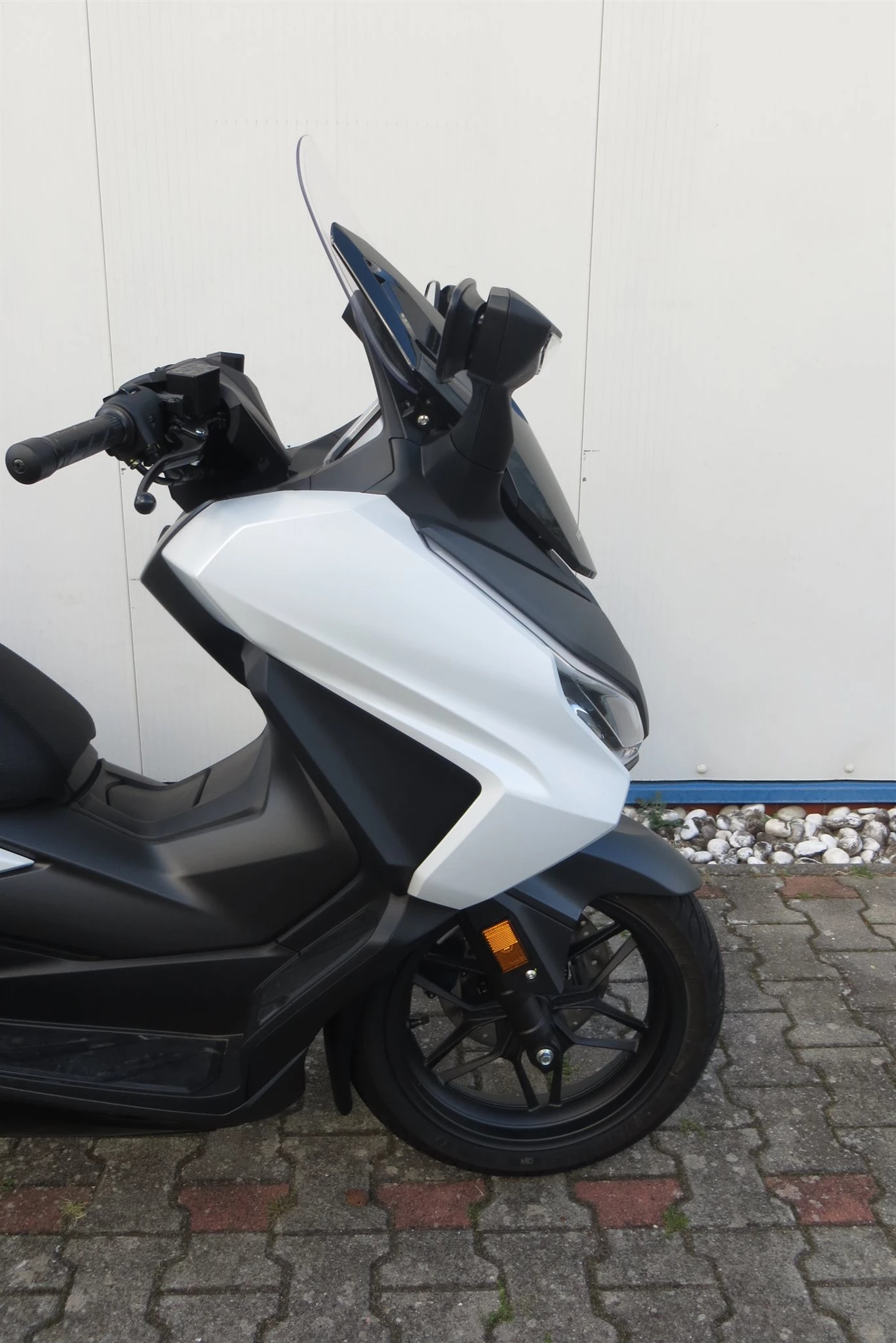 Honda Forza 125 in der Farbe Mat Pearl Cool White.