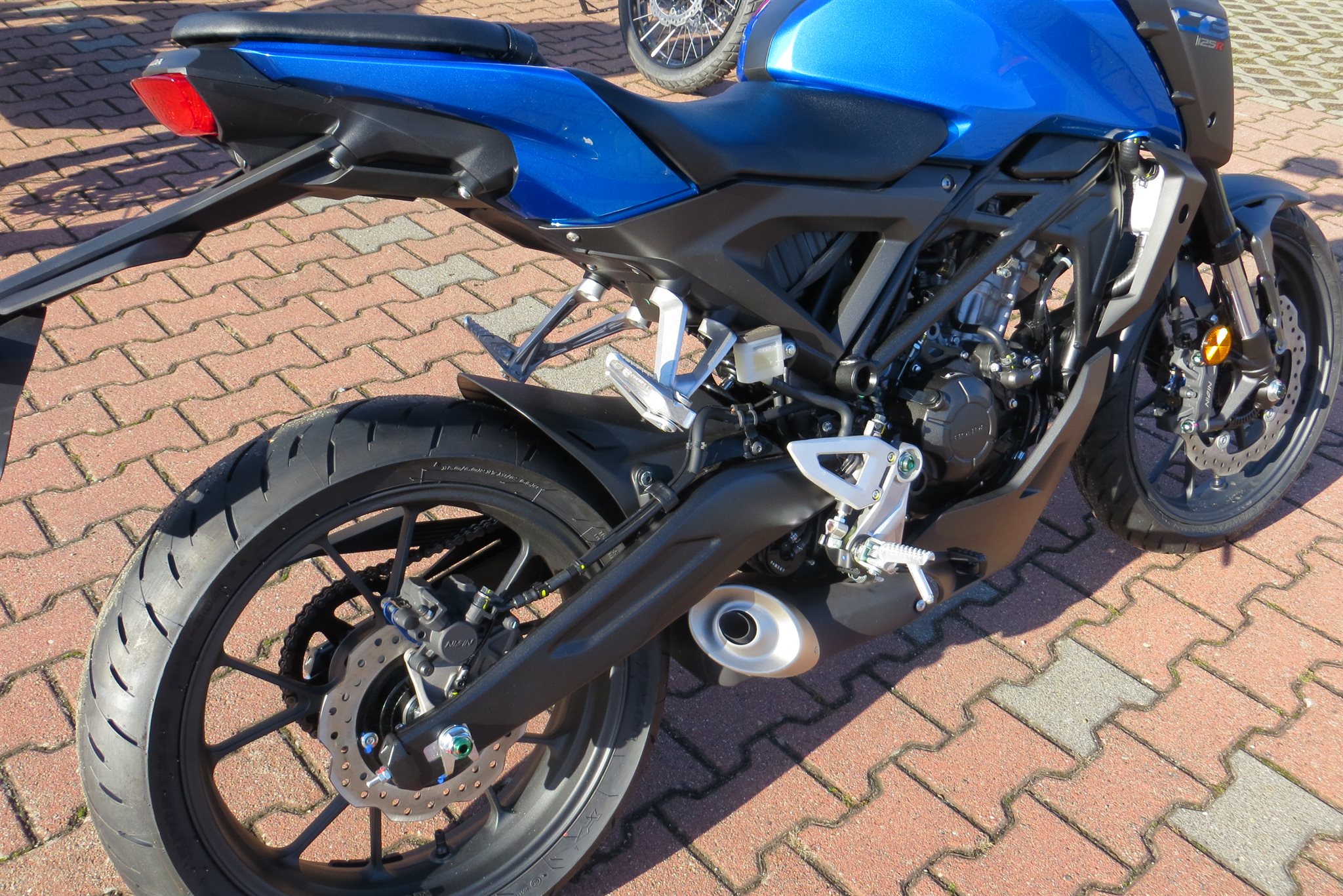 Honda CB125R in der Farbe Reef Sea Blue Metallic.