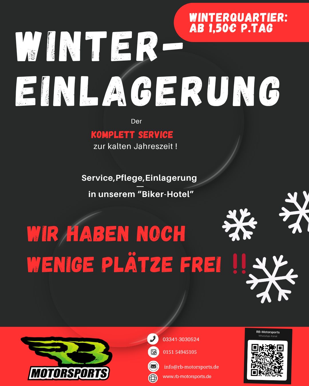 Wir bieten dir die perfekte Lösung, um dein Bike während des Winters optimal zu pflegen und sicher zu lagern. Bereite dich schon jetzt auf die nächste Saison vor und lass dein Motorrad bei uns „überwintern“ – **startklar für den Frühling**!